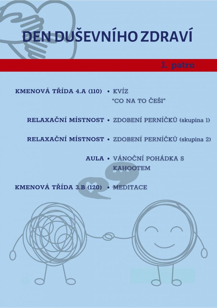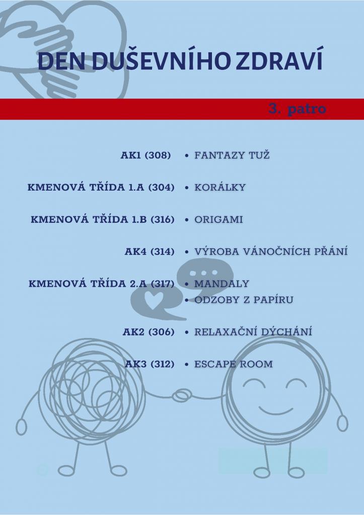 V rámci Dne duševního zdraví si každá třída připravila interaktivní zóny, kde můžete tvořit, sdílet a objevovat způsoby, jak pečovat o svou pohodu.