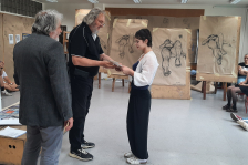 Žáci všech oborů třetího ročníku měli možnost zlepšit své kreslířské dovednosti během dvoudenního workshopu s prof. akad. mal. Borisem Jirků na naší škole. Figurama, kterou malíř, sochař a ilustrátor před sedmnácti lety založil, má za cíl studenty a žáky naučit vnímat figuru jinak, než jak nám ji představuje náš mozek. Pan profesor přišel s jasnou koncepcí výuky založené na zlepšování kresby pod jeho přímým vedením. To, co se naučil během čtyřicetileté kreslířské praxe - vědomosti, zkušenosti a poznání – předával našim žákům formou přednášek, přímých ukázek svého kreslířského mistrovství a odstraňováním nedostatků v kresbě žáků. Kladl důraz na řemeslo: ,,Nejdřív se naučíte kreslit figuru podle modelu. Potom se naučíte kreslit všechno, co jste viděli. A nakonec se naučíte nakreslit všechno, co jste schopni si představit.“ Naši žáci si tak vyzkoušeli kresbu figury z nadhledu a v perspektivě, která vychází směrem od nás. Kreslili model sedící, stojící a ležící. Boris Jirků učil, jak vést kreslící čáru, jak vnímat perspektivu, roviny, úběžníky atd., jak nakreslit jednotlivé části těla – hlavy, rukou, dlaní, prstů, chodidel. Snažil se, aby se žáci stali na chvíli iluzionisty a naučili se vnímat ,,svůj vesmír“.