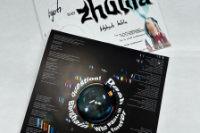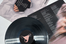 Práce studentů VOŠ 1. ročník, obor multimediální tvorba v předmětu Grafický design na téma Vizuální identita fiktivního hudebního alba a design obalu na vinylovou desku.