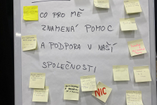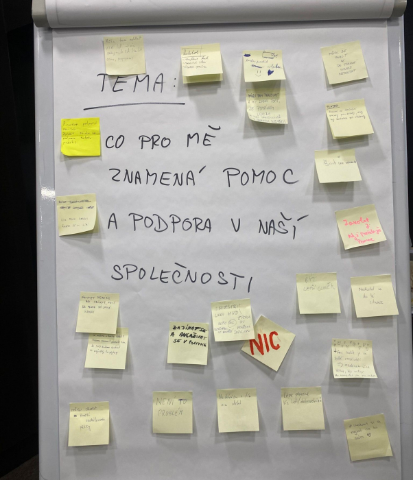 Následně jsme své projekty prezentovali před ostatními. Všichni přišli se spoustou kreativních nápadů a bylo skvělé je mezi sebou sdílet. Po prezentacích jsme se zapojili do programu organizovaného Českou charitou – vydali jsme se do města a hledali věci v našem okolí, které podle nás pomáhají společnosti.