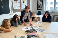 Skupina jedenácti žáků 8. a 9. tříd ze ZŠ Františka Formana se zastavila v ateliéru Motion designu. Paní uč. Franková všechny seznámila s tvorbou komiksu, s textovým základem i následným grafickým zpracováním. Zaslíbenou zemí komiksu je Francie. Žáky nicméně zaujalo i vyprávění o specifické grafice využité v hororech série „Vetřelec“. Takže – jen to zkusit!