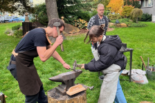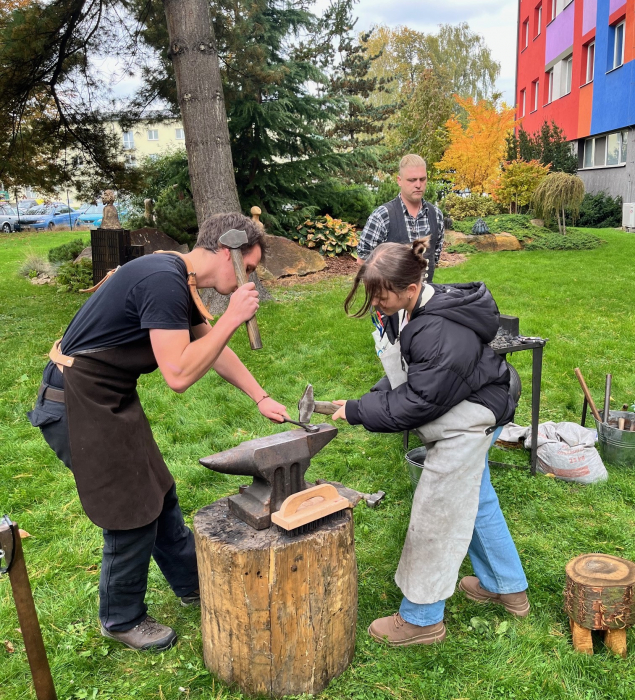 Třináct žáků 8. a 9. tříd ze ZŠ Gen. Janka v Ostravě – Mariánských Horách se vrátilo tak trochu do starých časů. Umělecký kovář pan uč. Studnička rozdmýchal uhlí, v pravém žáru mohlo vzniknout kovářské dílo. Žáci si mohli vyzkoušet ukovat ocelové hřebíky, které dosud viděli jen ve filmech. Velkým pomocníkem byl i náš letošní absolvent Vašek Fichna. Kolik následovníků bude mít? Těšíme se na ně.