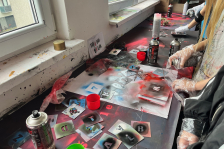 Skupinka žáků (7., 8. a 9. třídy) z hlučínské ZŠ Rovniny si vyzkoušela něco opravdu zajímavého. Paní uč. Sroková připravila program v dílně Grafického designu tak, aby zaujal. Vždyť kdo nikdy neslyšel o sprejeřích a sprejerství! Žáci si zkusili sprejování přes šablonu, zaujalo je využití vtipných hlášek s obrazovým doprovodem. Trocha zápachu nevadila a neobyčejný obsah byl na světě.